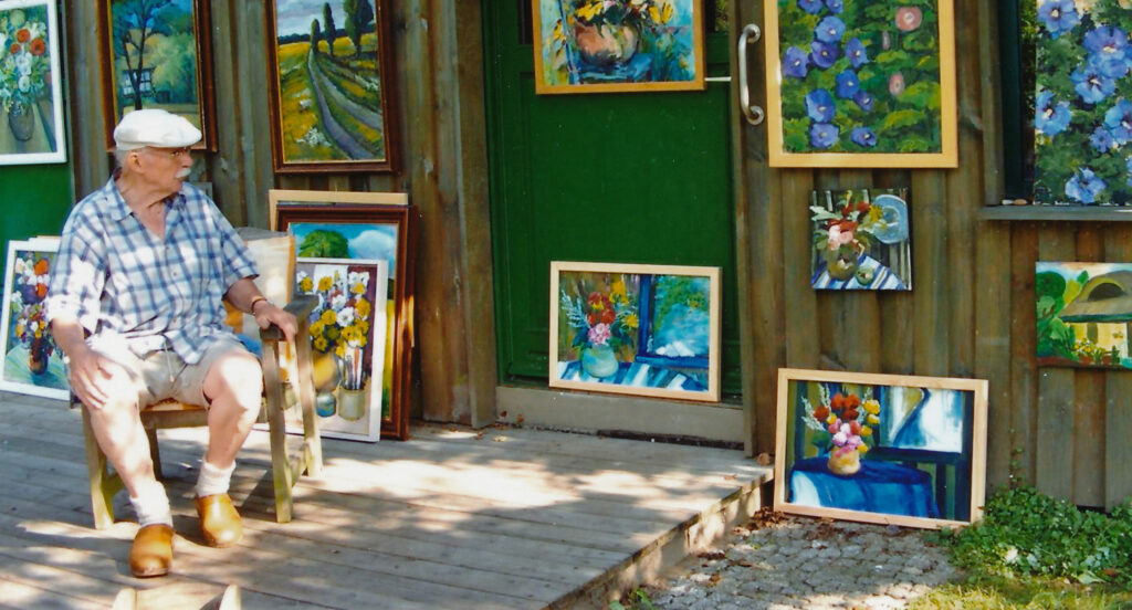 und Aufhängen/Aufstellen der Bilder in Scheune und Kirche
